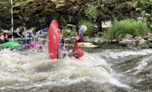 Continuing Telford Canoe Club’s mission of promoting freestyle kayaking, we held another of our periodic open freestyle sessions. Throughout the winter we hold these events at the swimming pool, but summer brings with it the opportunity to have coaching on our local wave at Jackfield rapids. The sessions are open to members of any club in the area, and we strive to bring in some of the best expertise in the country to help develop skills, whether participants are new to the sport or highly experienced.